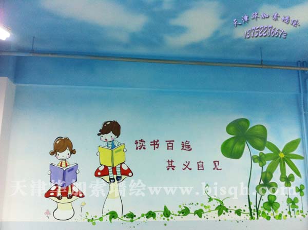 繪畫內(nèi)容:圖書閱覽室彩繪