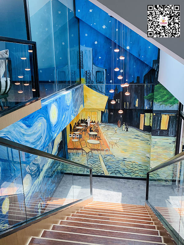 這是天津灣一家兒童機構(gòu)的上下兩層樓梯連接處彩繪