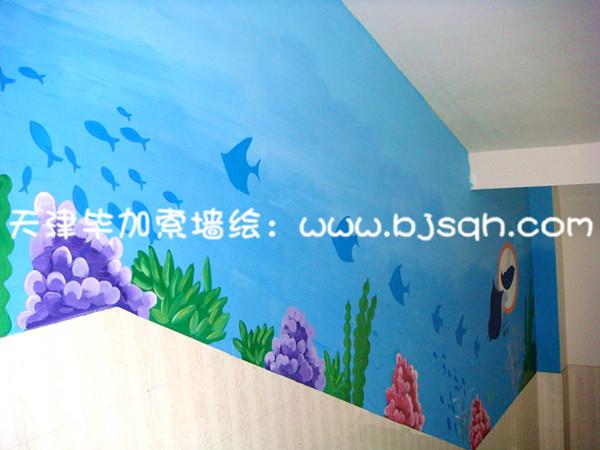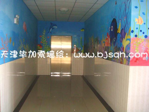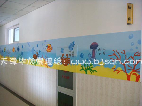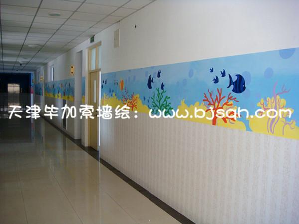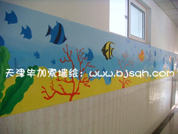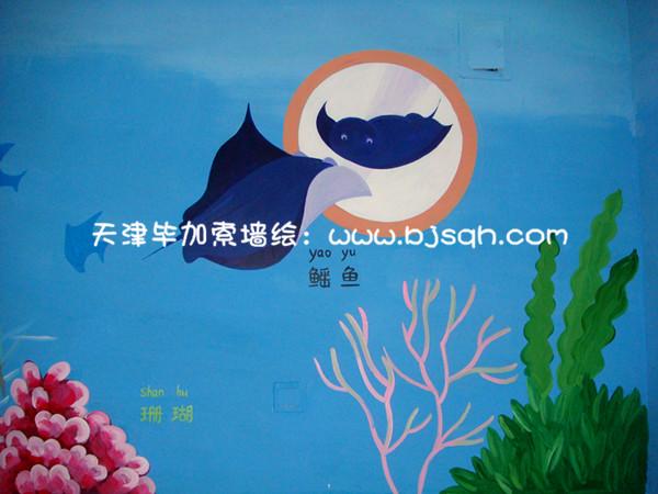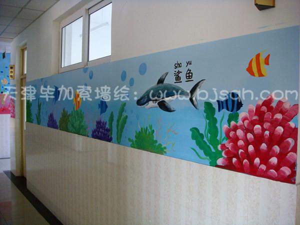 二樓的主題采用的海底世界,每個(gè)海洋生物都有中文名和拼音字母,這樣可以讓同學(xué)們在樓道中都可以學(xué)到知識(shí),了解海洋生物的名稱。